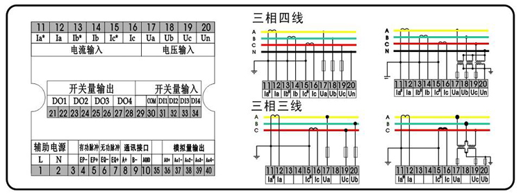 測量:三相電壓、電流、有功功率、無功功率、功率因數(shù)、頻率、有功電能、無功電能